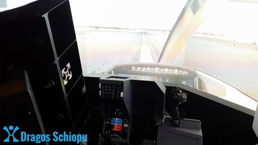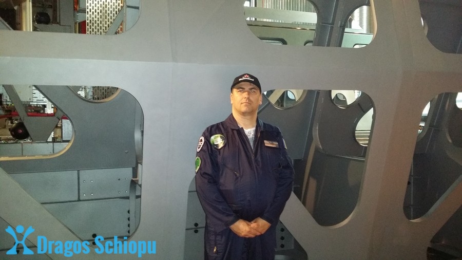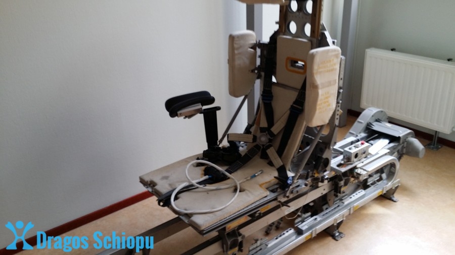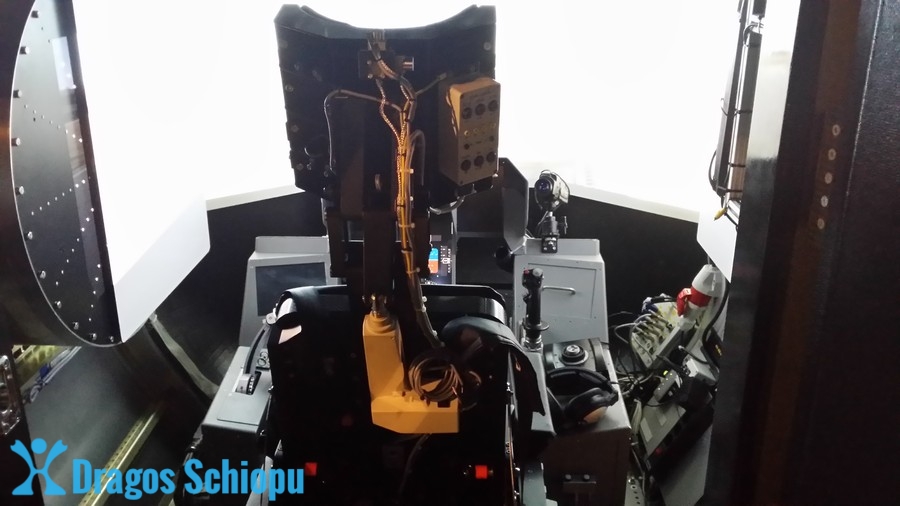 Dupa pauza de masa, a urmat una din cele mai tari experiente pe care le poti avea in aceasta viata. O sa vedeti in curand filmarea cu mine in simulator. Nu stiu ce as putea sa va povestesc despre „dihania” cu care m-am jucat astazi, pentru ca nu prea imi gasesc usor cuvintele. Sa simti o forta de 3G timp de 20 de secunde nu se compara cu niciun roller coaster din lume. Sunt roller coaster-e care ating 5-6 G forta pentru 2-3 secunde. Dar pentru a rezista 20 de secunde, ai nevoie de putin training care sa te invete ce trebuie sa faci in astfel de situatii.