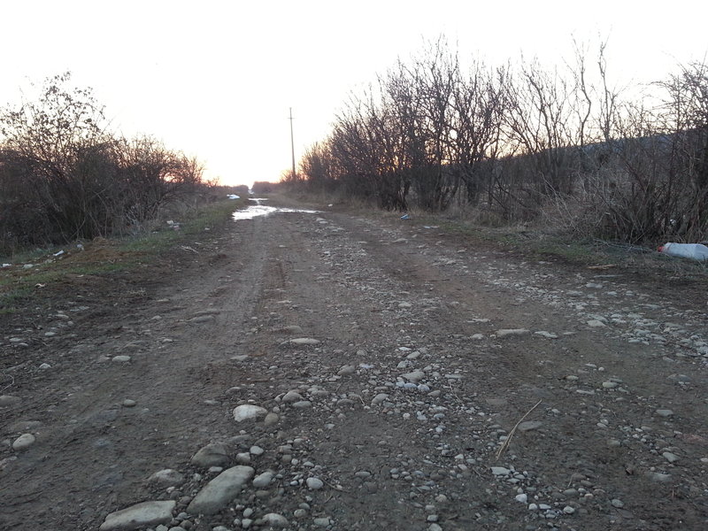Ne-au explicat oamenii ca urmeaza cea mai nasoala parte, inca vreo 100 de metri, dupa care drumul e curat si se poate merge foarte ok. Deja eram putin ingrijorati de starea drumului, iar vestile nu erau deloc incurajatoare. Ne-au explicat ca mai bine intram cu rotile pe fagasurile facute de alte masini, ca e mai sigur asa si ne-au urat drum bun.